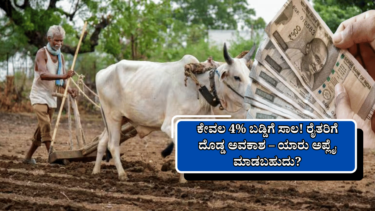 ಕೃಷಿ ವೆಚ್ಚ, ಸ್ವಂತ ಉದ್ಯೋಗ ಅಥವಾ ಆರ್ಥಿಕ ಸಂಕಷ್ಟದಿಂದ ಹೊರಬರಲು ಕಡಿಮೆ ಬಡ್ಡಿದರದ ಸಾಲ ಬೇಕೆಂದು ಹುಡುಕುತ್ತಿರುವವರಿಗೆ ಇದು ಸುವರ್ಣಾವಕಾಶ. ಇತ್ತೀಚಿನ ಅಪ್ಡೇಟ್ ಪ್ರಕಾರ ಕಿಸಾನ್ ಕ್ರೆಡಿಟ್ ಕಾರ್ಡ್ (KCC) ಯೋಜನೆಯಡಿ ರೈತರಿಗೆ ಕೇವಲ 4% ಬಡ್ಡಿದರದಲ್ಲಿ ₹3 ಲಕ್ಷವರೆಗೆ ಸಾಲ ಸಿಗುತ್ತಿದೆ.